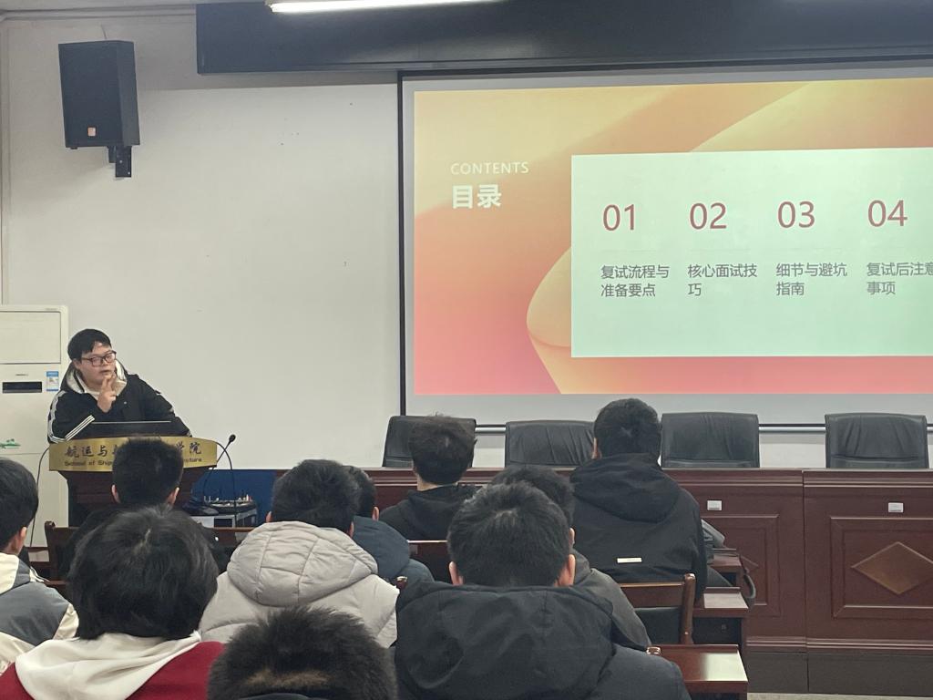 2025年3月5日晚,伟德bv1946研究生会在第四教学楼第一会议室举办了考研复试经验分享会。本次活动特别邀请了三位成功通过考研复试的学长,他们慷慨分享个人经历和备考策略,为即将面临复试挑战的同学们送上了一份贴心的“备考指南”。