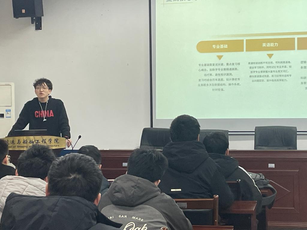 2024级机械工程专业研究生王靖宇,从选择导师的角度出发,结合自身经验讲述了心态管理的重要性。他鼓励同学们积极与心仪导师沟通,并提醒大家在紧张的备考过程中保持良好心态,合理安排时间,从容应对各种挑战。