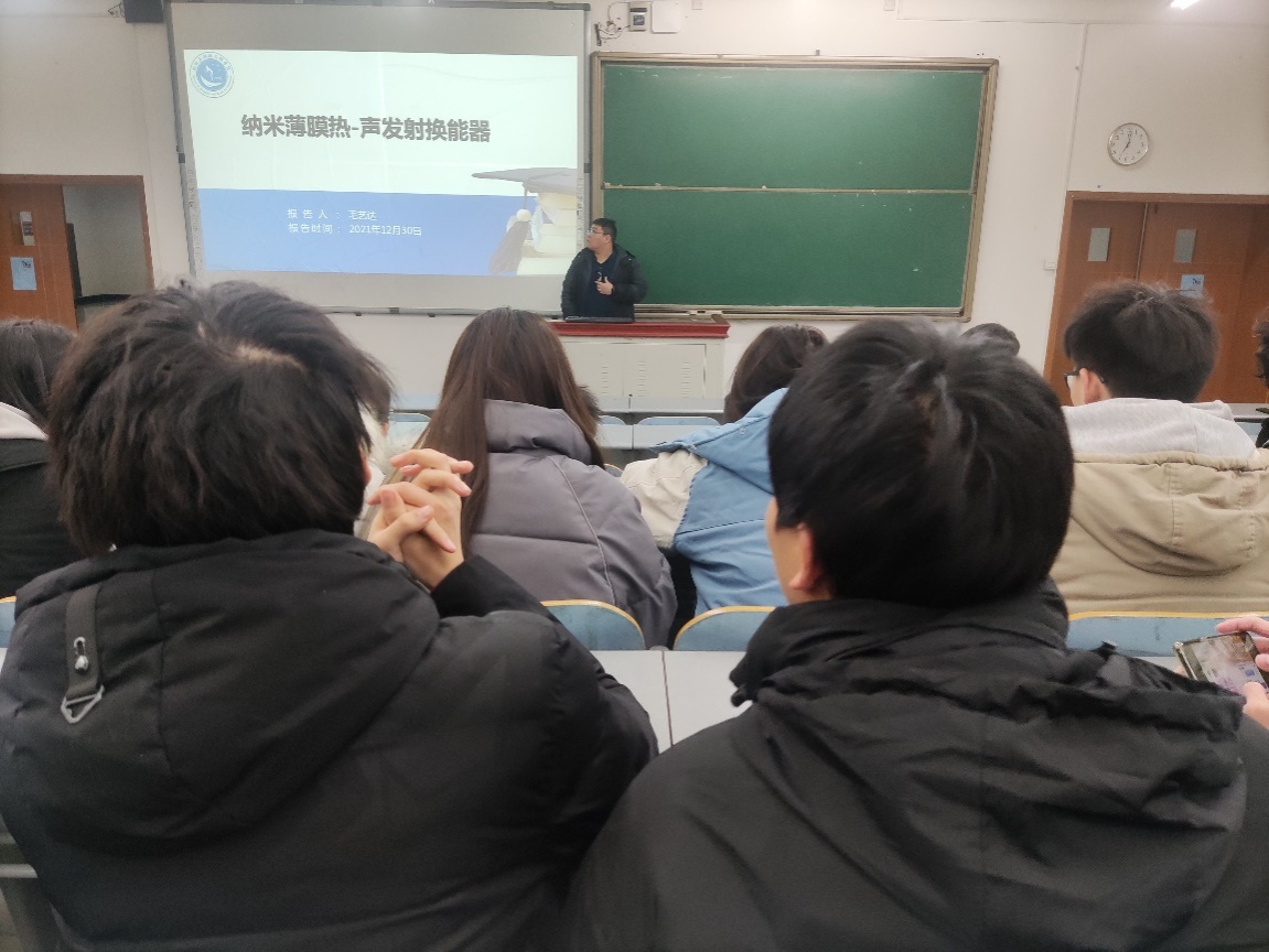 2021年12月30日,学院船舶与海洋工程系毛艺达老师在科学城校区A01238教室,对船舶与海洋工程2020级学生做了题为“纳米薄膜热-声发射换能器”的学术讲座。