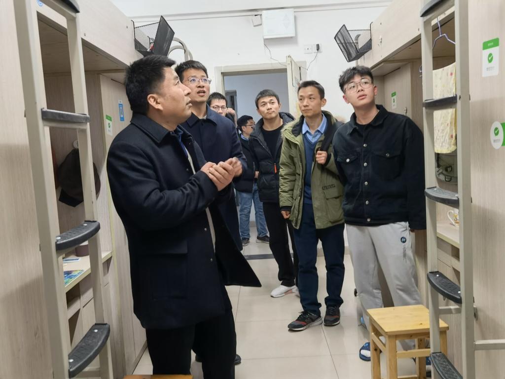 会后,盛院长带队深入学生宿舍,了解、关心学生的学习、生活情况,并对宿舍安全、寝室风貌等方面提出了具体的要求。他鼓励同学要志存高远,相互帮助,共同进步,提醒同学们要积极锻炼身体,加强疫情防护,努力改善宿舍环境,努力成长为一名优秀大学生。