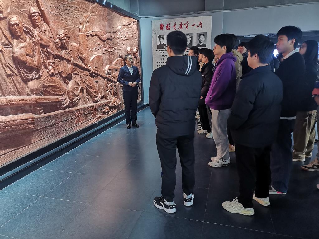 生产实习首先由一堂课程思政教育课展开。在车渡站文化陈列室,同学们参观了重庆车渡的历史照片和视频,还有各种沙盘、展柜、模型、雕塑的展览,第一次直观且生动地感受到了重庆车渡的发展历程以及车渡在抗日战争、解放战争做出的重大贡献,并对车渡在车辆渡运、国防交通、水上应急救援等重要作用有了全面的了解。