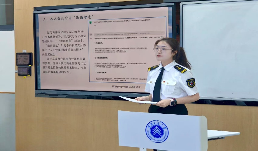 在"智慧AI赋能,引领航海未来"专题环节,支部创新采用互动问答、技术展示等多元化形式,深入探讨了人工智能技术在航运领域的前沿应用。其中,DeepSeek智能航运系统的成功应用引发热烈讨论。该系统已在多个海事部门部署,显著提升了信息获取效率,为海事管理服务注入智能化新动能。与会入党积极分子纷纷表示,作为新时代航运力量,将积极把握AI技术发展机遇,努力将前沿科技与专业知识深度融合,积极主动创新,为航运事业发展贡献智慧力量。