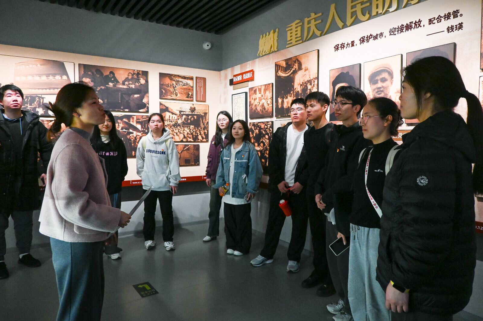 随后,师生们来到解放重庆历史陈列馆。馆内丰富的展品和详实的史料,生动地再现了解放重庆的艰难历程和辉煌成就。从解放战争的全面爆发到重庆的最终解放,每一段历史都凝聚着无数革命先辈的热血与智慧。同学们在参观过程中认真聆听讲解,不时相互交流心得,纷纷表示要铭记历史,传承革命精神,为实现中华民族伟大复兴的中国梦贡献自己的力量。