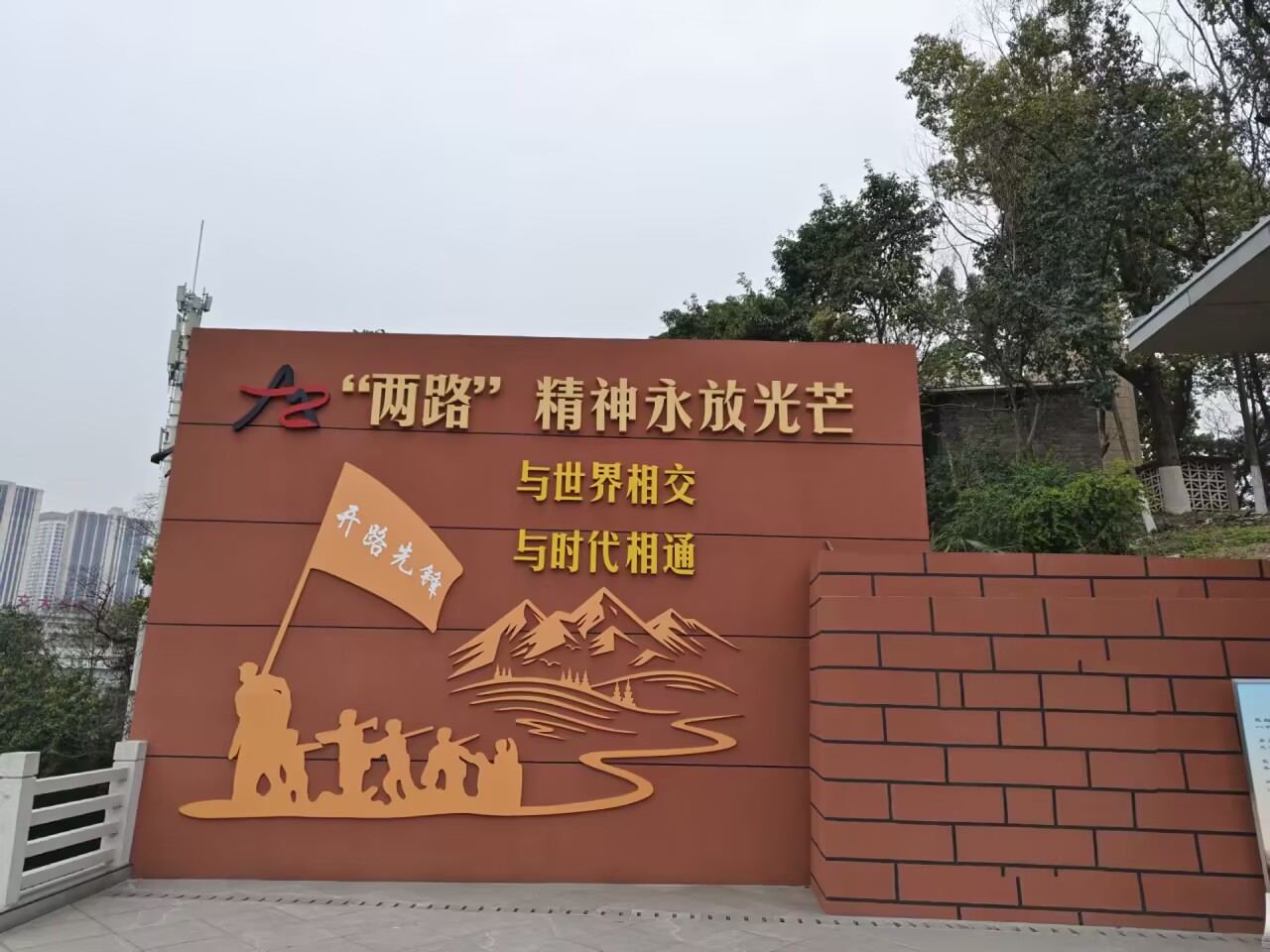 沿着园区前行,梯级步道与车行道相互交错。其中,梯级步道蜿蜒曲折,恰似川藏公路在崇山峻岭间艰难延伸;而车行道相对平坦开阔,正如青藏公路般坦荡豪迈。不远处,1951年代的老校门静静伫立,校门上铭刻着交大人“誓为坦途,甘当路石”的初心。大门左右两侧雕刻的“‘两路’精神薪火相传明德行远交通天下”,更是彰显了一代代交大人接续奋斗、砥砺前行的远大志向,让师生们深刻感受到先辈们为交通事业奉献的坚定决心。