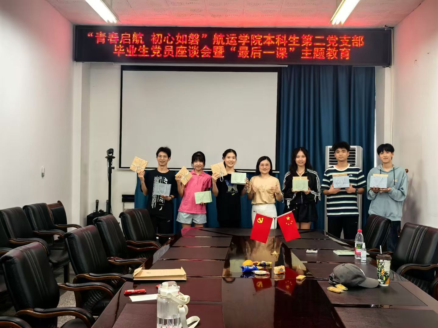 支部书记吴燕以“永葆初心与本色”为题,带领大家回顾了毕业生党员的成长历程。从怀揣梦想踏入校园,到凭借不懈努力成长为光荣的中国共产党党员,再到在支部中积极发挥先锋模范作用,这一路走来,大家收获满满。有人从懵懂青涩的“校园小白”,迅速成长为全面发展的“六边形战士”;有人从竞赛领域的“新手小兵”,华丽转身为带领团队前进的科研“领航者”;还有人从理论考试的“常胜将军”,蜕变为理论与实操兼备的“双料冠军”。短短数年,支部党员们紧跟党的步伐,在升学、就业、科研、美育等多个领域崭露头角,用实际行动诠释着党员的责任与担当。