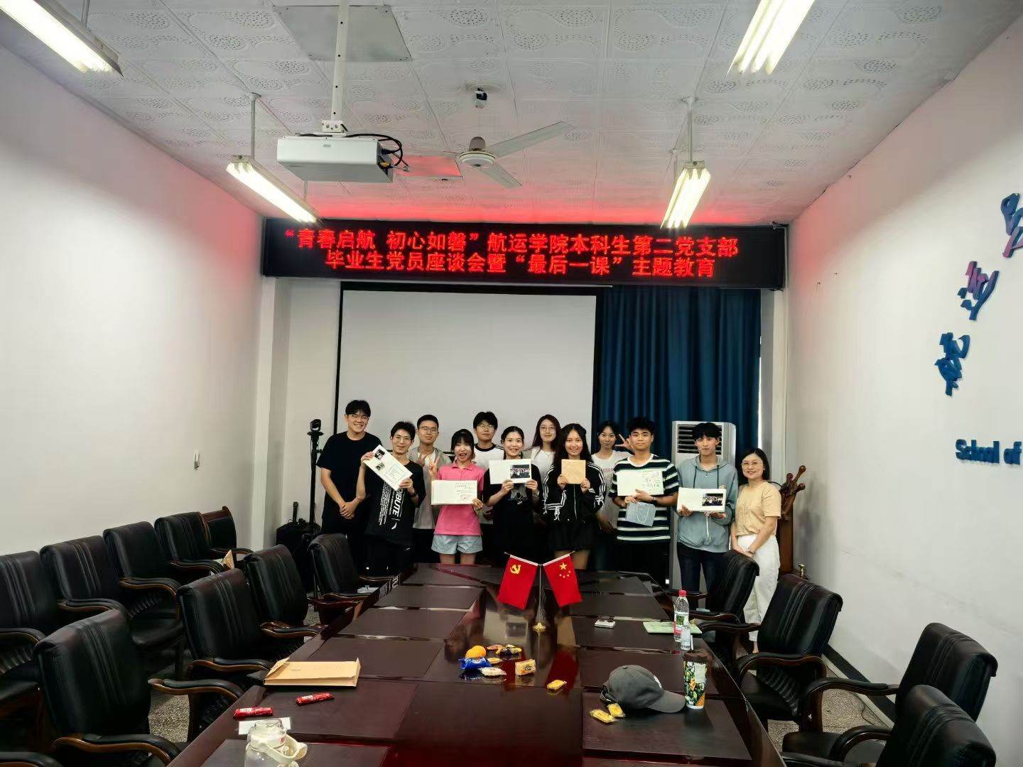 最后,吴燕老师对毕业生党员提出三点殷切期望:一要志存高远,坚守理想,毫不动摇坚持为公之方向,坚定不移向上攀登;二要明辨是非,抵制不正之风,在利益诱惑面前保持清醒,坚守浩然正气;三要责任立于心,担当行天下,不断提升干事创业的积极性和主动性,将“两路”精神融入血脉,争当交通强国的突击队和海洋强国的排头兵,在大有可为的新时代大有作为。