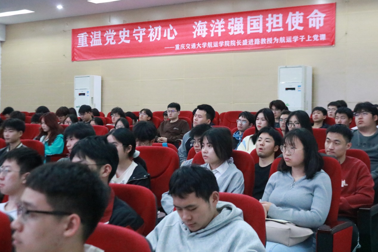 盛院长以“重温党史守初心,海洋强国担使命”为主题,从“建中国共产党的初心和使命、党的百年奋斗及其辉煌成就、党的百年奋斗经验继承发扬”三个方面,带领同学们重温了中国共产党的百年奋斗史。盛院长以娓娓道来的方式,从中国近代史的开端第一次鸦片战争讲起,生动讲述了我们党从“小小红船”到“巍巍巨轮”中经历的道不尽的艰辛与努力。他强调指出,学史明理、学史增信、学史崇德、学史力行,中国共产党作为百年大党,在斗争中诞生、在斗争中发展、在斗争中壮大,始终坚持人民至上、增进民生福祉、促进人的全面发展,顺应了人民群众对美好生活的新期盼。当今世界正处于百年未有之大变局,站在全面推进中国式现代化的重要历史节点,交通强国、海洋强国战略为航运学子施展抱负提供了天阔天地,期望同学们能够追寻红色足迹、汲取精神动力、汇聚磅礴力量,在实现自己人生价值的同时,画好强国建设、民族复兴的最大同心圆。