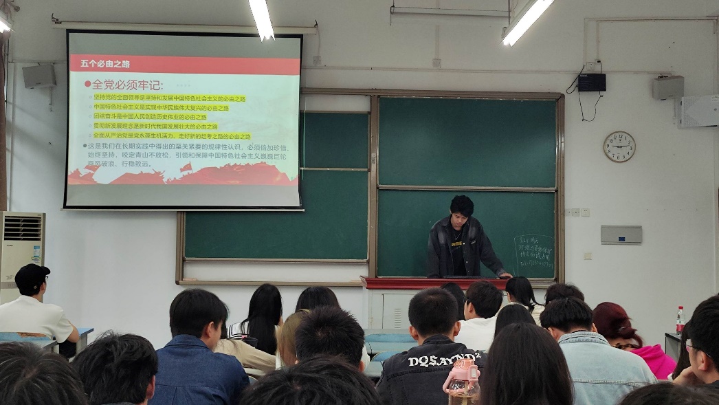 在本次培训会,以学生会主席团成员李万嵩同学带领学习党的二十大精神拉开帷幕。李万嵩同学从实现中国式现代化、两步走战略、五个必由之路等方面,深入讲解了党的二十大精神的内涵和精髓,加强了同学们对党的二十大精神的领悟,进一步促进了学生组织成员思想理论素养的提升。