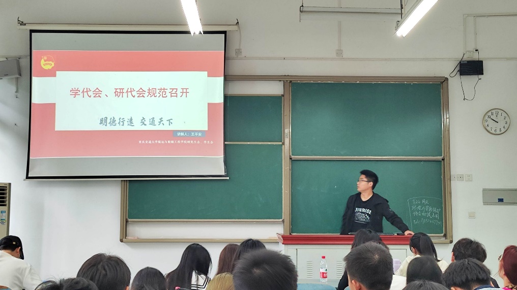 学代会、研代会是学生会组织的重要制度,是同学在校园参与社会主义民主政治的重要途径。为了保证学院每年学代会、研代会的规范召开,院研究生会主席团成员王平安对学代会、研代会主要任务以及召开流程进行了详细的讲解,让大家对学生代表大会有了深刻的认识和较为全面的了解。