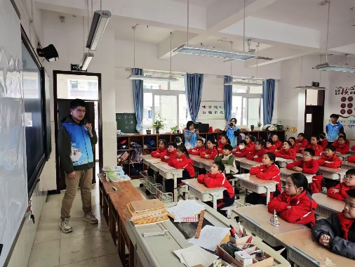 活动伊始,科普团成员以生动的图文和视频展示,为同学们讲解了船舶发展史、现代船舶类型及海洋资源保护等知识。课堂上,孩子们目光专注,表现出浓厚兴趣,踊跃举手提问,问题接连不断,科普团成员以通俗易懂的语言结合生活实例一一解答,现场气氛热烈。