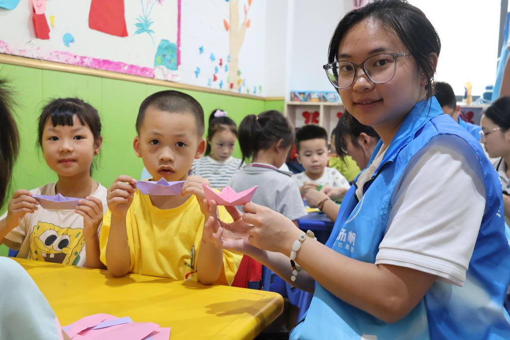 在石船镇社区,实践团举办了“知识启迪心灵,梦想启航未来”主题活动,通过海洋文化讲座、环保帆布袋绘画、彩纸船折叠与模拟航行等多元形式,激发孩子们对海洋与船舶的兴趣,普及科学知识,点燃探索热情。活动不仅提升了孩子们的科学素养,也在他们心中种下了“走向深蓝、探索未知”的梦想种子,增强了社区凝聚力,为乡村社会和谐发展注入青春活力。