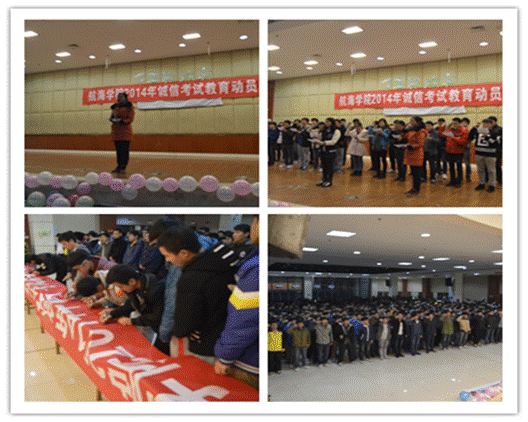 12月23日下午,航海学院在学生活动中心一楼组织召开了诚信考试动员大会。此次大会由航海学院辅导员刘佳老师为航院13级与14级学子讲解诚信考试的重要性,并要求大家做到努力学习、诚信考试。