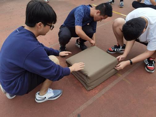 本次比赛内容分别为:消防水带、包扎、叠被子三个项目。本次比赛采取计时记分和完成度记分规则。每个小组分别由三个同学组成,以小组为单位完成比赛并且计入小组总成绩。在比赛开始之前,同学们都认真观看了教学视频和教学文案,通过学习后再进行比赛,效率高,事半功倍。