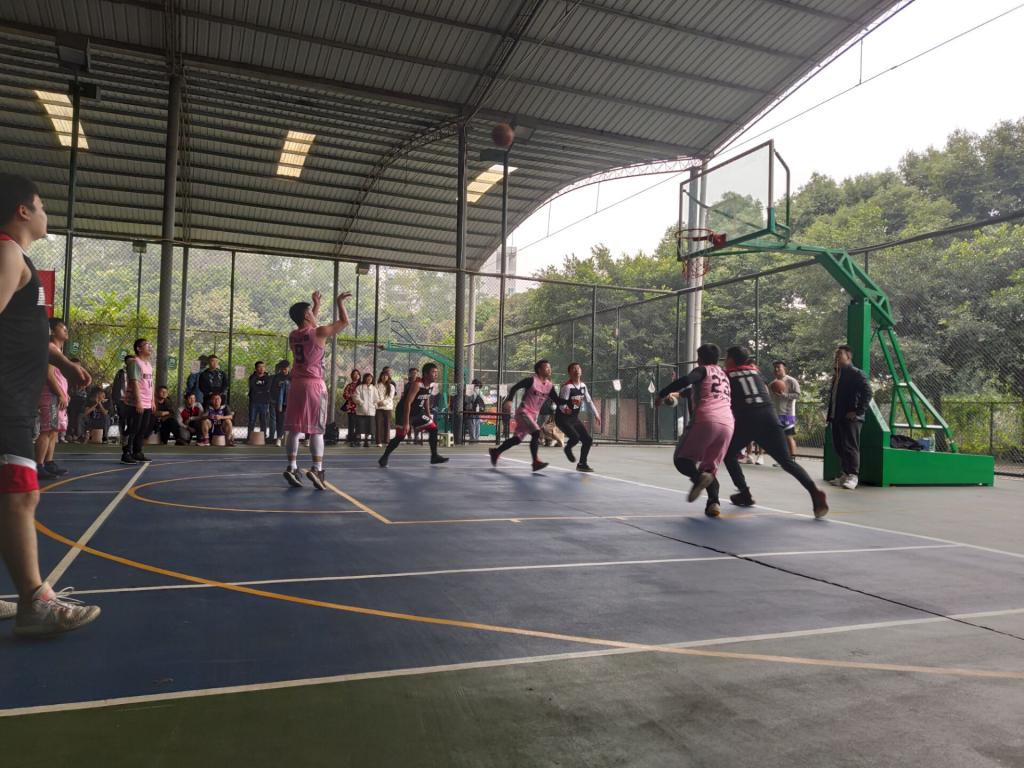本次比赛分为三个项目。开场攻势猛烈,2021级队员们运用身高上的优势将球牢牢控制在前场,对2020级队员们形成压倒性小胜。经过多次篮板球,2021级队员9号球员李鑫瑞突破,上篮命中全场为之欢呼。随后,2020级队员们锋利直追,李渝锋也得三分,打出了一往无前的气势。