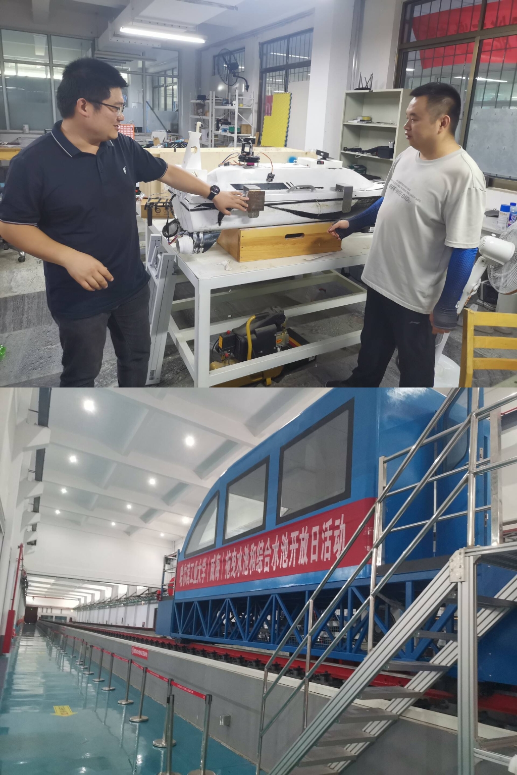在哈工大(威海)海洋工程学院船模水池实验室主任于东的带领下,团队成员参观了哈工大(威海)大学生创新创业中心、拖曳水池与综合水池实验室、智能船团队的相关实验设备和科创作品,了解了该校大学生创新创业的成功经验和先进做法。