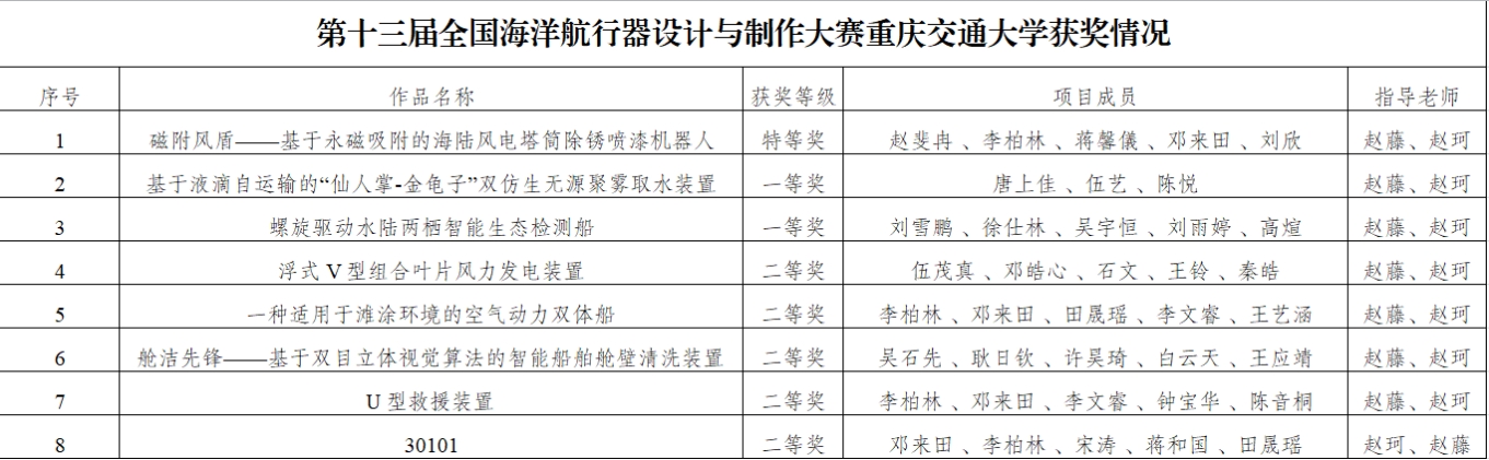 我校学子在“第十三届全国海洋航行器设计与制作大赛”中再创佳绩