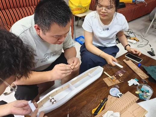 在工作坊中,各民族学生充分发挥专业特长与文化背景,共同探索科技创新新思路与新方法,组建了10余个创新项目团队。轮机工程专业的土家族同学邓新怡、船舶电子电气工程专业的苗族同学刘欣等人,巧妙地将丰富的民族元素融入船模创作,精心打造出别具一格的“麻阳子”船模。通过团队合作,不同民族的文化元素融入科技创新项目,既提升了项目文化内涵,又增强了项目的创新性与实用性。