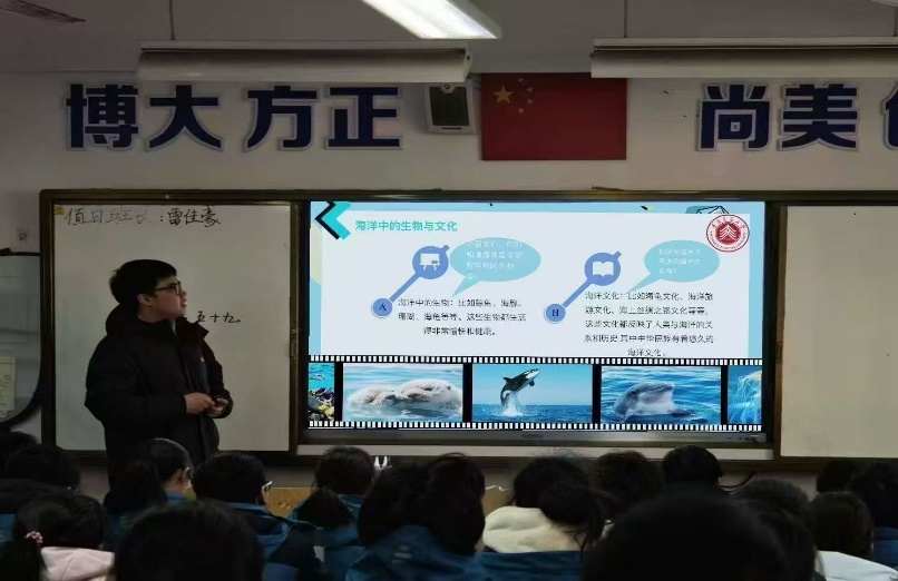 1月21日,科普团成员王禹钦和魏睿航分别前往辽宁省抚顺市第一中学和山东潍坊安琦尔国际幼儿园内开展海洋船舶科普活动。王禹钦通过向学弟学妹们阐述海洋船舶相关知识,介绍航运相关专业,同学们领略到航运业的广阔前景。魏睿航在幼儿园的科普活动中,通过趣味提问和奖励纪念品等方式,激发了孩童们学习科学知识的浓厚兴趣和探索精神。在团队深入浅出的科普下,不仅拓宽了学子们的视野,也激发了他们对科学技术和海洋探索的兴趣。