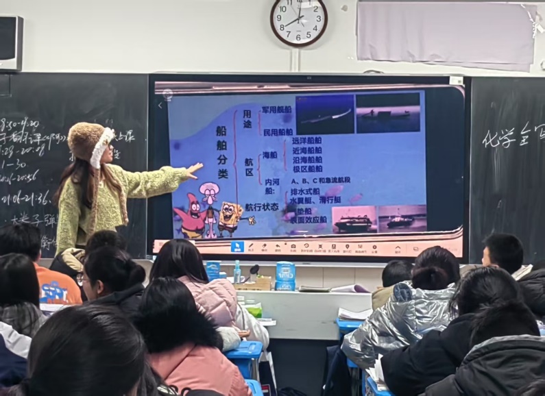 2月8日下午,科普团成员孙钰其回到湖北省武汉市新洲第一中学用诙谐幽默的语言介绍了航海类专业相关内容,用扎实的专业功底向同学们科普了船舶与海洋相关知识,同学们对科普中提到的双体船、气垫船等兴趣颇深。这使得同学们不仅学到了船舶基础知识,也萌发了立志投身舰船科技事业梦想的种子。