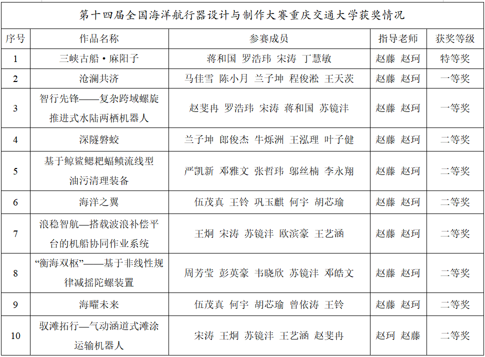 喜讯:我校师生在第十四届全国海洋航行器设计与制作大赛暨第二届船舶与海洋工程类教师教学创新大赛中再获佳绩