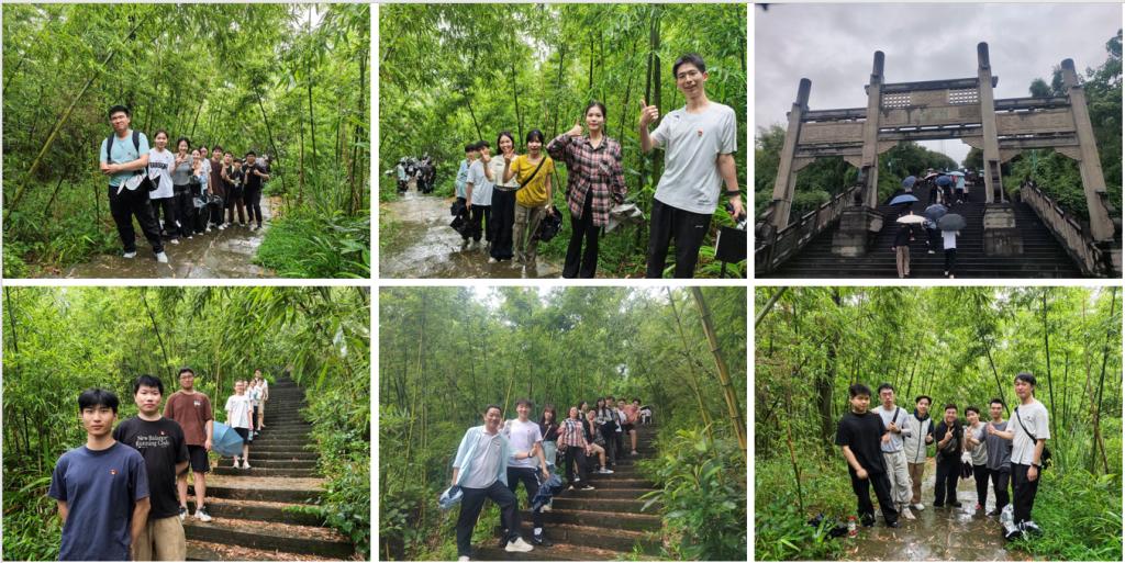 告别陶行知先生纪念馆后,全体人员前往北碚区缙云山健身梯道,开展“登清廉高峰”主题登山活动。山高、路滑、景美,抬头望去,719级健身梯仿佛高耸云端。在绵绵细雨中,大家先是拾阶而上,沿着蜿蜒的山路勇敢攀登。老师们一路上与学生交流着心得,鼓励大家在面对未来挑战时保持坚定的廉洁操守,不忘初心、砥砺前行,不时洒满欢声笑语。攀登缙云山不仅是一次体力的挑战,更是一次磨砺意志、坚定信念的过程,每一步都见证着师生党员的坚韧与勇气,路途中大家相互鼓励、相互扶持,展现出团结协作的精神风貌,也寓意着毕业生党员们未来无论遇到何种困难,都能坚守廉洁本色和初心使命勇往直前。