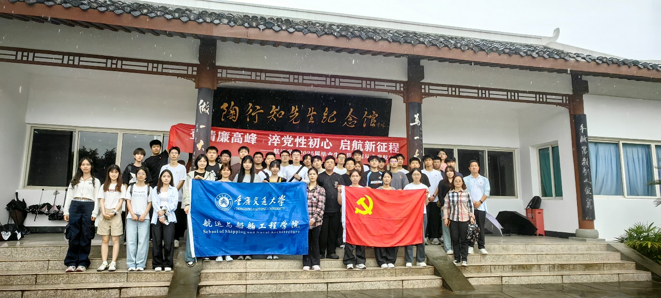 在重庆市爱国主义教育基地、廉政教育示范基地、中国民主同盟传统教育基地——合川陶行知先生纪念馆,毕业生党员通过“捧着一颗心来,不带半根草去”的先生箴言,深刻体悟了一代教育家的清廉风骨。在纪念馆内,师生党员们认真聆听讲解员详细介绍陶行知先生的生平事迹与教育理念,深入了解其高尚品德和廉洁奉公精神,在珍贵史料前驻足凝视,充分感受到他“爱满天下”的教育家情怀和“行为知之始,知是行之成”“教学做合一”的深刻教育思想。学院纪委书记李世佼强调指出:“航运事业关乎国计民生,航运人才培养需兼具‘浪尖上的本领’与‘船舱里的清风’。作为未来‘水上国门’的守护者,必须像校准航向一样校准人生坐标,始终绷紧廉洁自律之弦,让每艘船都载满清风,让每位师生都成为清廉使者,助力国家海洋强国和民族复兴。”