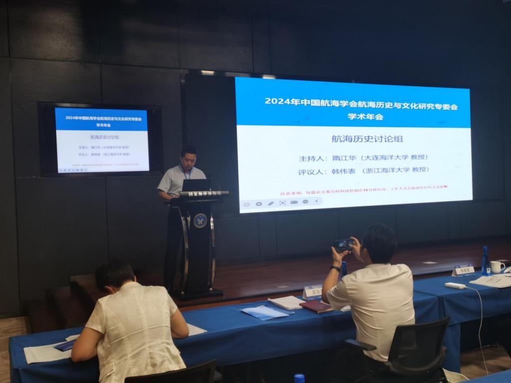 换届会议之后,紧接着召开了专委会2024年度学术年会。会议共收到学术论文30余篇,分两个专题进行分组交流与讨论。与会委员、学者围绕郑和研究、航海历史文献、港埠海洋贸易、海防史迹、船舶考古、港口建设、港务企业发展、港航企业文化、航标兴建、海军气象、帆船涂装饰绘、航政管理等议题进行发言交流,并就行业形势发展、项目合作交流及学术热点、创新点等进行热烈讨论,既有作者的真知灼见,又有专家的精彩点评。航海技术系杨雪锋在会上交流了教改论文《航海史在航海类专业思政教育中的应用》,通过梳理中西方古代、近现代航海历史、航海技术发展史,重构了融合航海史思政元素的教学内容,制定了将航海史融入专业课思政教育的实际举措,以激发学生爱国、爱校、爱专业的热情,使毕业生积极投身祖国的航海事业。